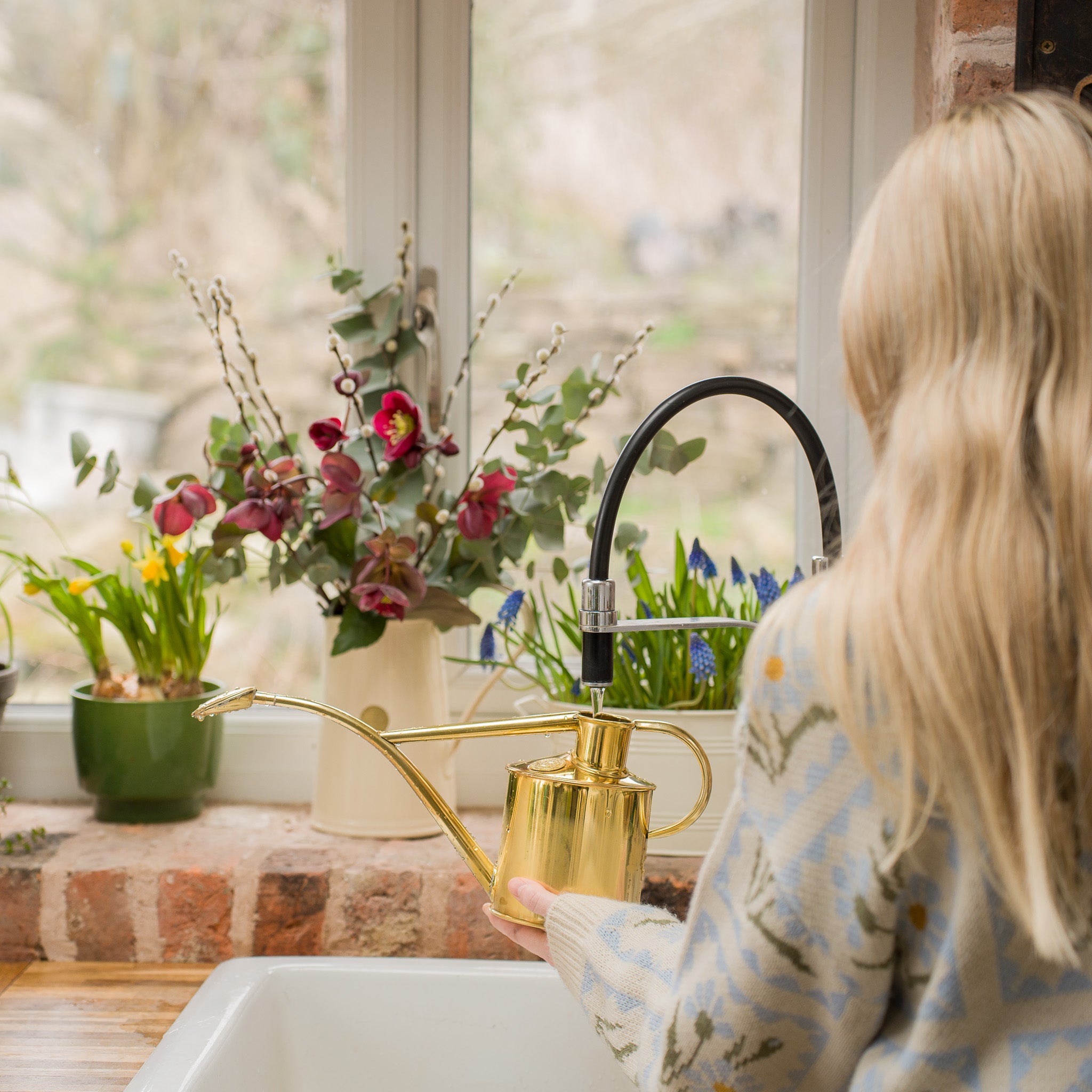 A greenhouse watering can often needs to do more than one job. Seeds and seedlings need an extra-fine rose to deliver a gentle spray that won't disturb the soil or dislodge young plants. As plants mature, she can switch to a coarser spray for speed – and a long-reach spout makes light work of far shelves and hard-to-reach corners.